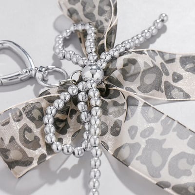 即納 レオパードメタルリボンキーホルダー